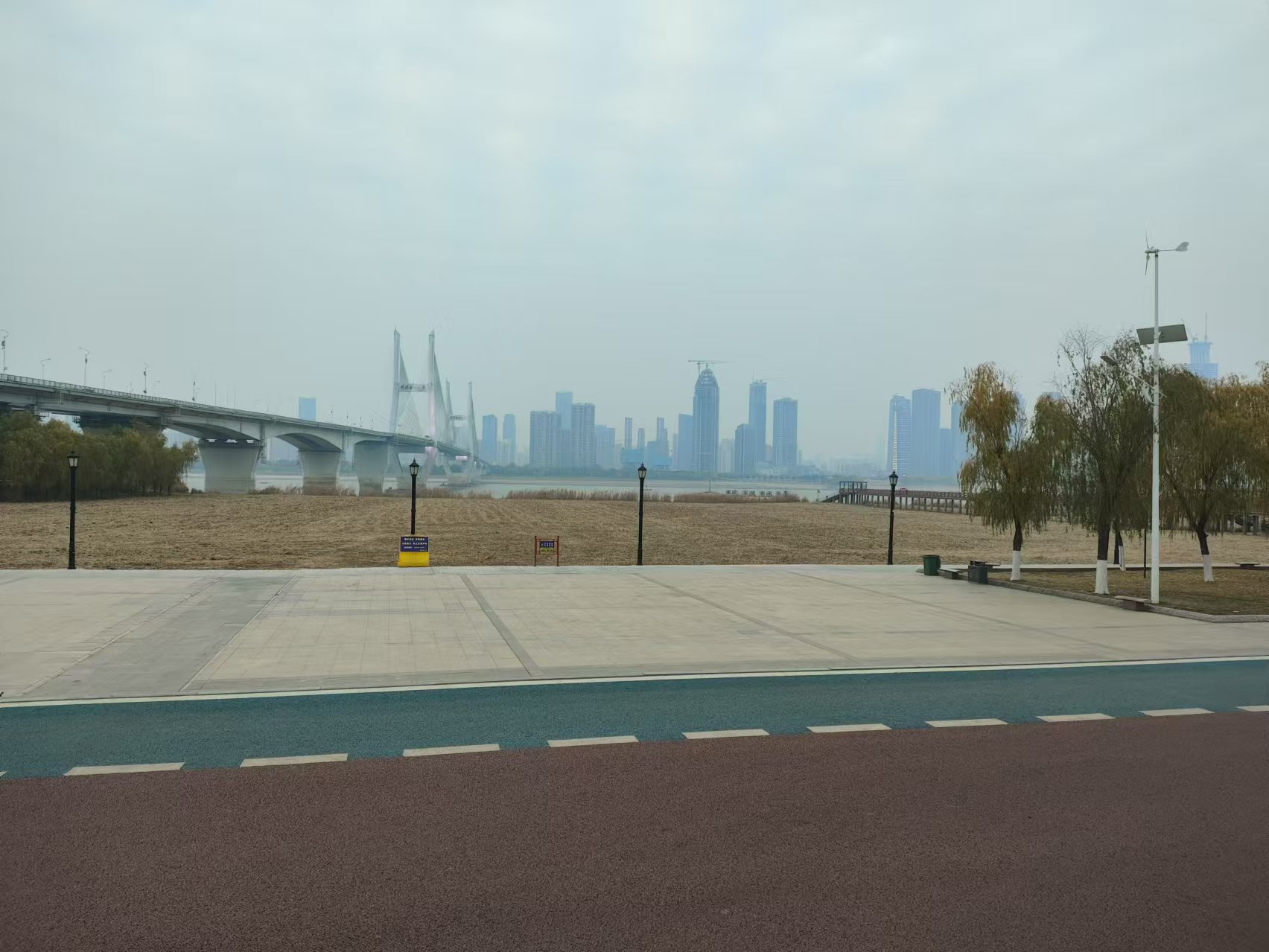 之后徒步到长江边,在环境治理的一个公园走了一会。不过这天雾霾非常非常严重,几乎什么都不好看,走一会儿就想咳嗽。