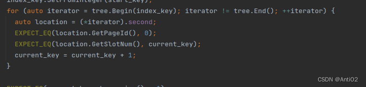 - operator++()先判断是否是该页的最后一个记录,如果是,那么leaf_page变为下一页,并且unpin当前页面。这里要注意如果最后一个leaf的最后一条记录,那么是不能跳到next_page上的,应该直接idx++,这样迭代器位置就和End()一样了。